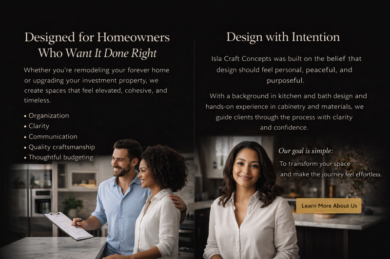 At Isla Craft Concepts, we believe beautiful spaces shouldn’t come with inflated design fees.